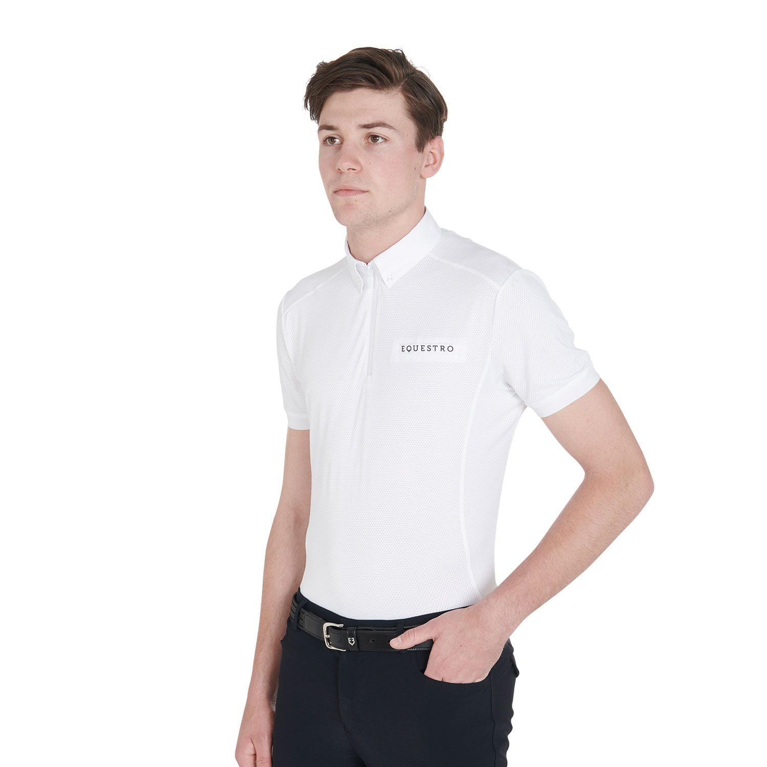 Equestro Men’s Perforated Mesh Tech Polo Shirt – XS